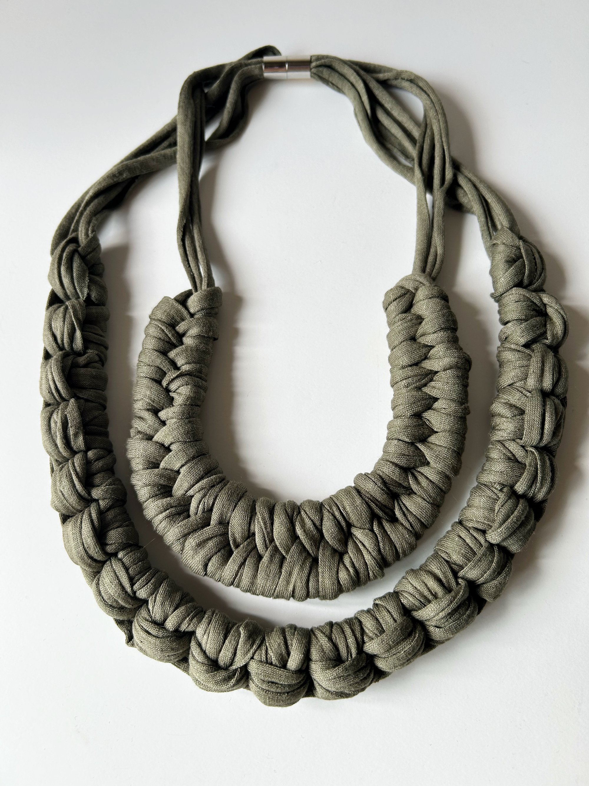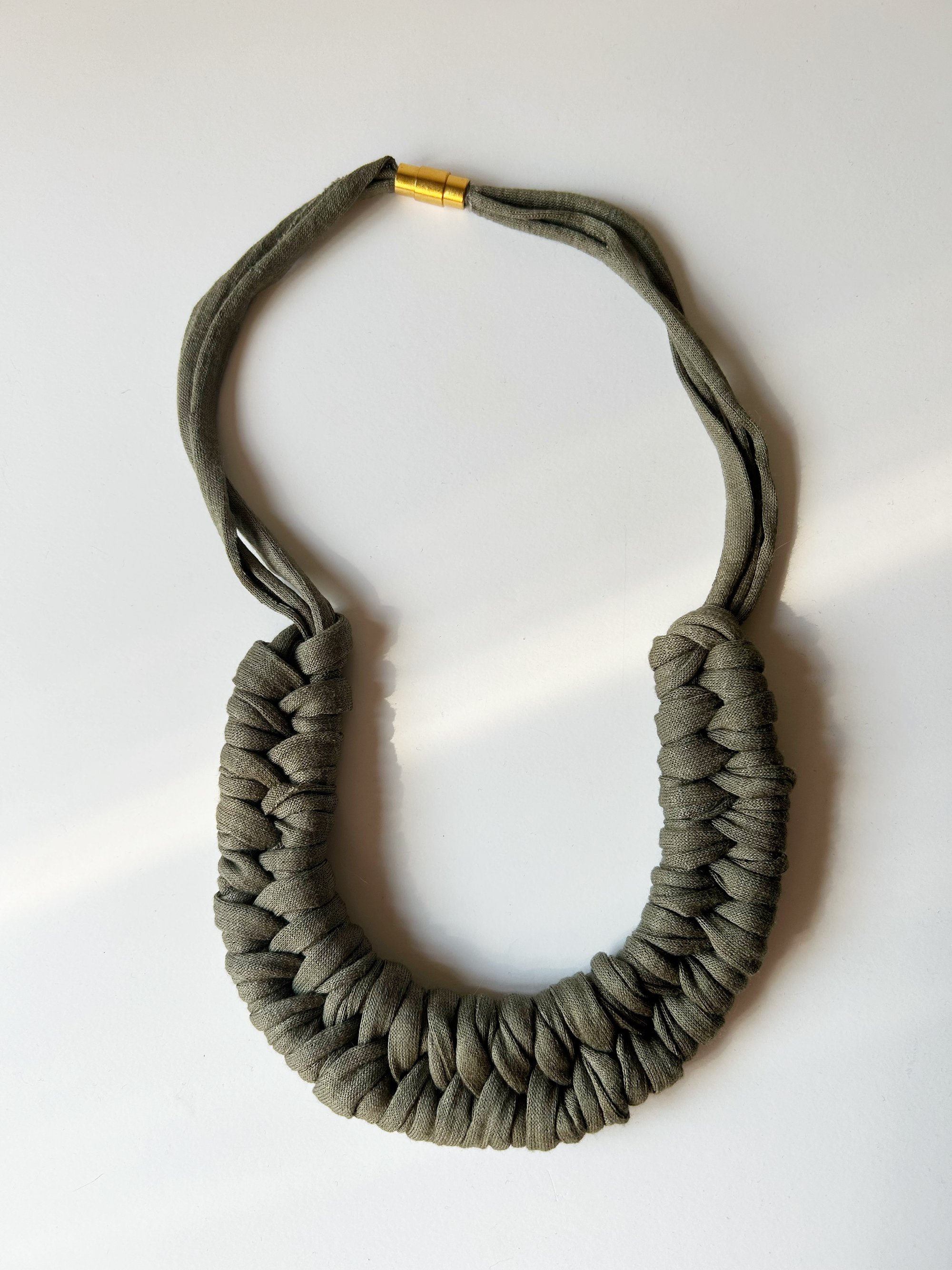 Collar verde Khaki con cierre magnético dorado de latón.