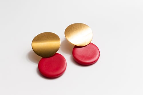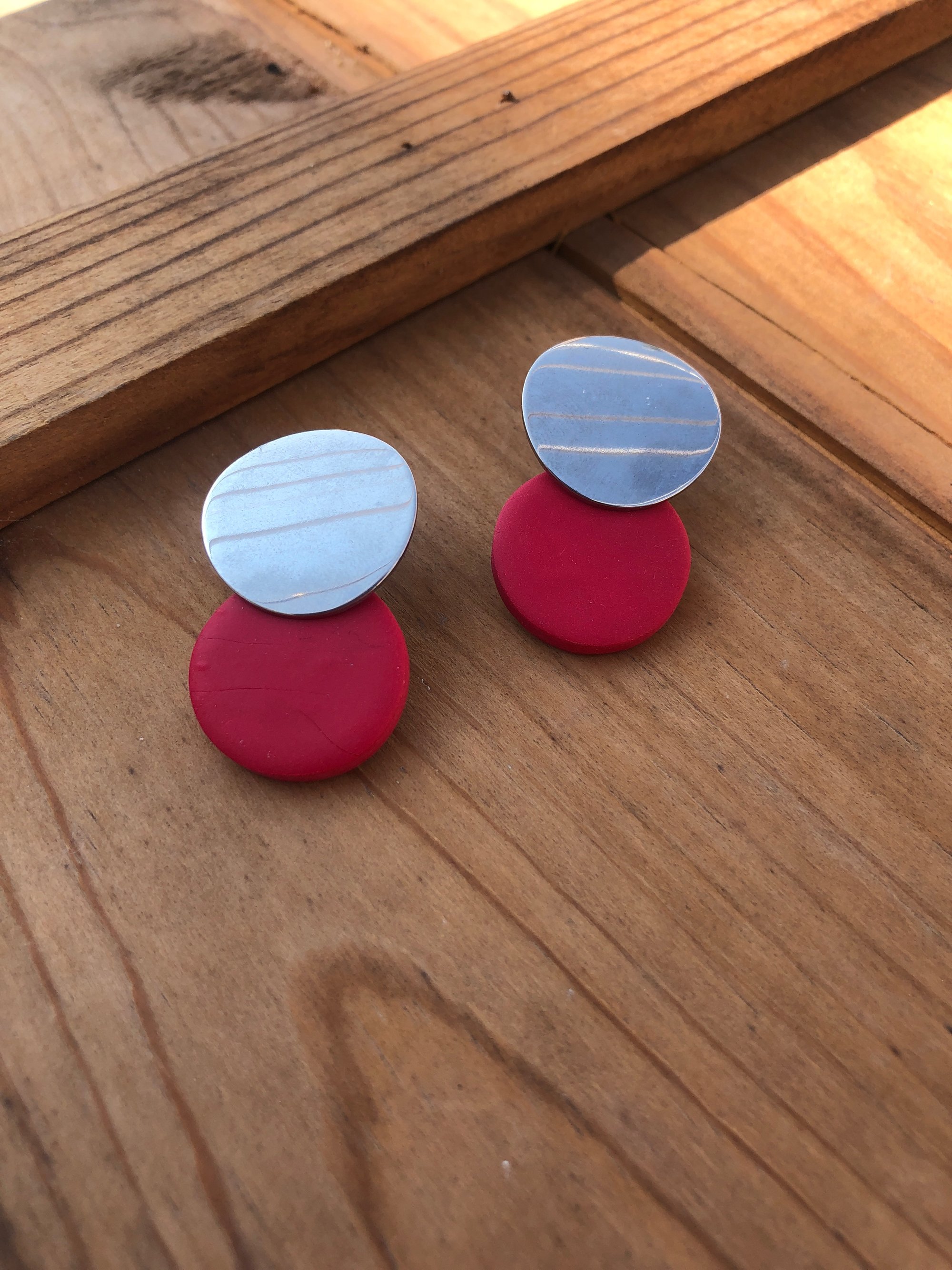 El cierre de mariposa es de acero inoxidable y las piezas modeladas a mano en arcilla polimérica. Solo hay un par de cada color, puedes hacer tu encargo en el color que más te guste.